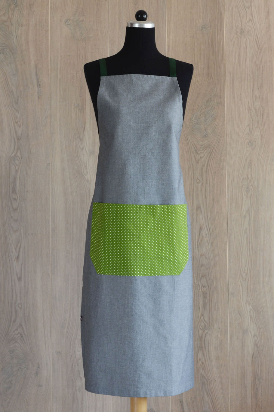 Eine Schürze für alle Fälle, ob in der Küche, im Garten oder der Werkstatt. Dank der praktischen Taschen ist alles griffbereit. Die Länge des oberen Bandes kann durch einen einfachen Knoten individuell eingestellt werden.