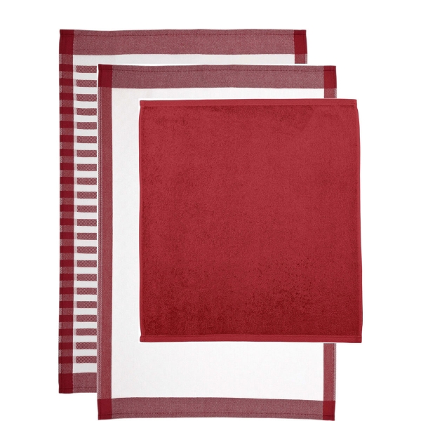 Ross Küchentuchset 3-teilig "Superior" | rubinrot-weiß