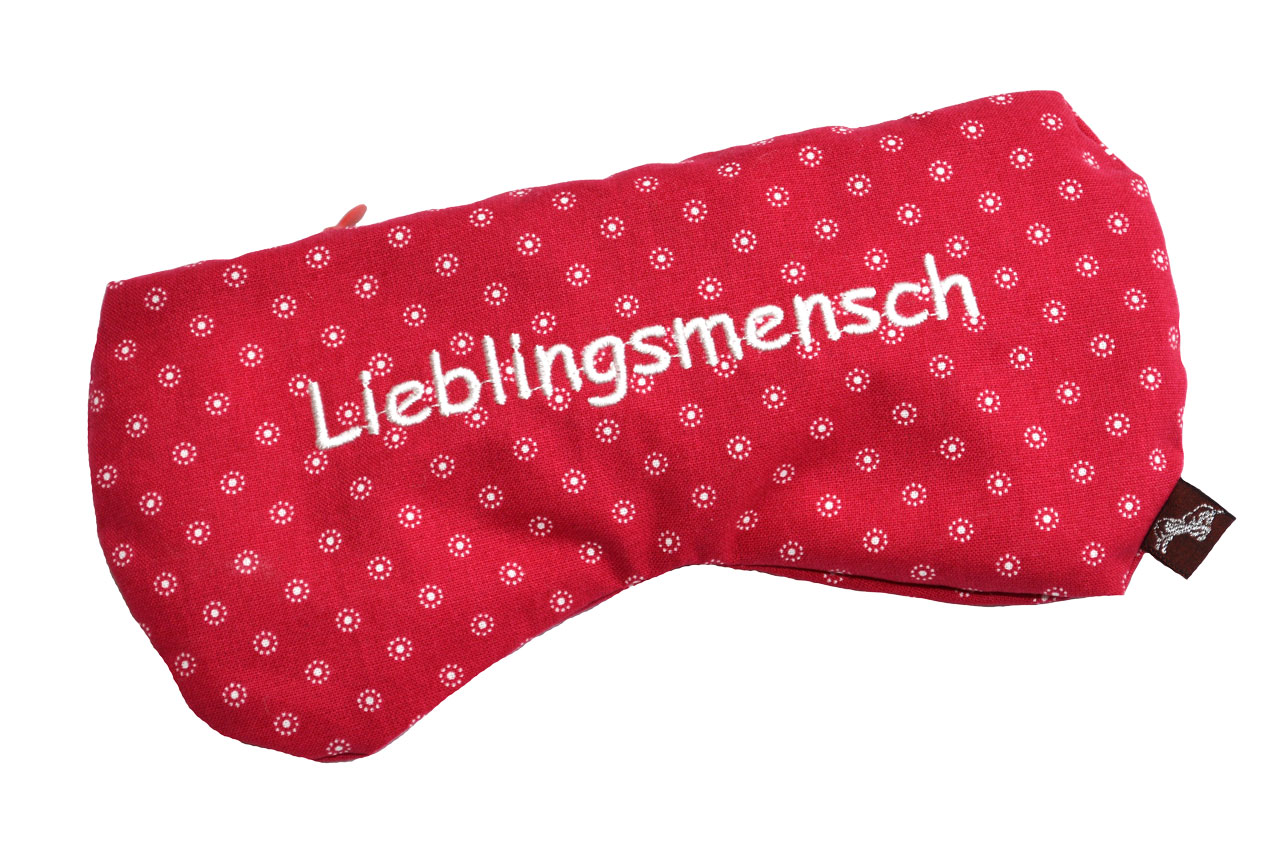 Traubenkernkissen bestickt mit "Lieblingsmensch" erdbeerrot