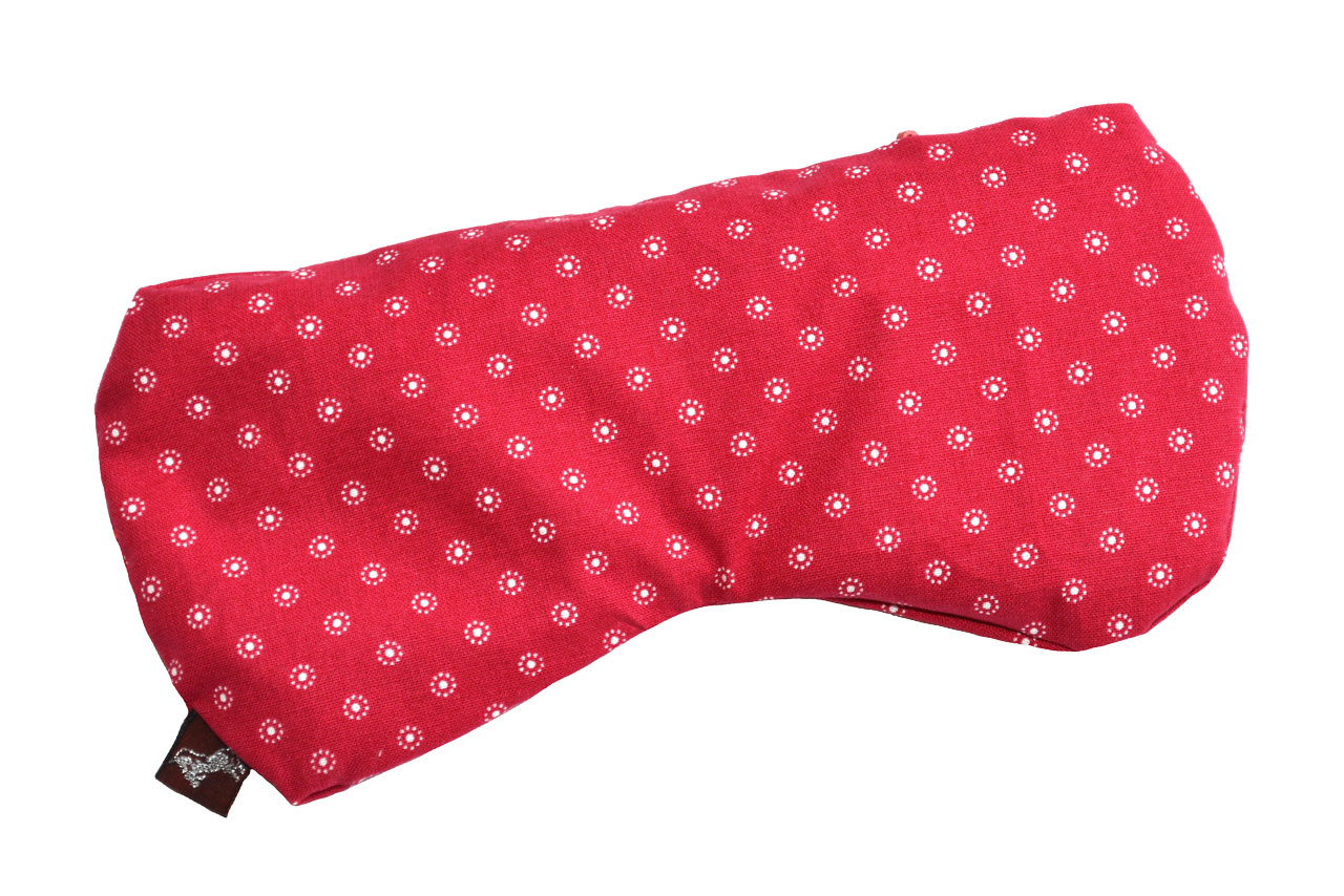 Dieses kleine erdbeerrote Kissen ist ein echter Alltagsheld. Gefüllt mit Traubenkernen kann es sowohl als Wärme-, als auch als Kühlkissen verwendet werden. Durch seine besondere Form ist das Kissen vielseitig einsetzbar. Als Augen- oder Nackenkissen läßt es Sie entspannen. Warm oder kalt dient es als Notfallhelfer überall dort, wo es gebraucht wird. Der Bezug ist durch einen feinen Reißverschluss abnehmbar und kann bei 40° Grad separat gewaschen werden.