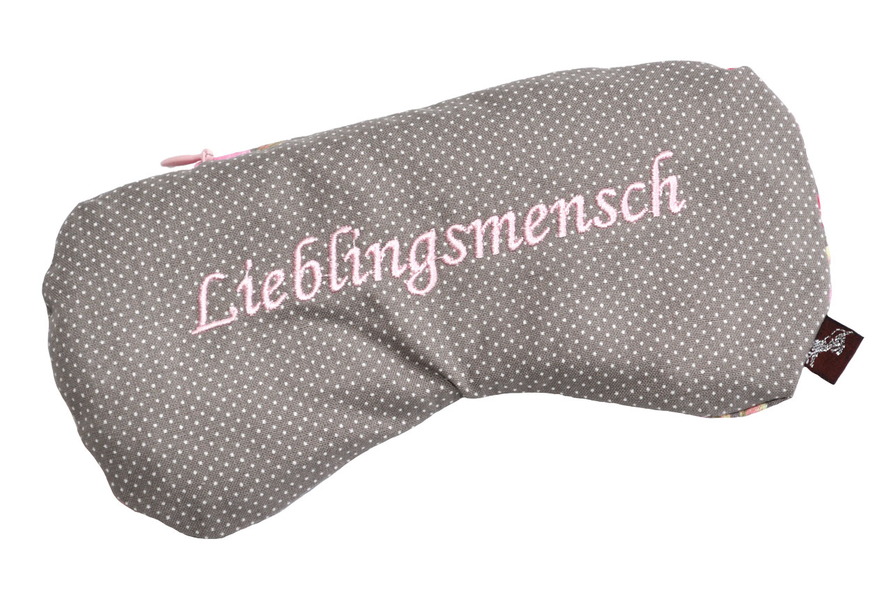 Traubenkernkissen bestickt mit "Lieblingsmensch" - taklamakanbraun