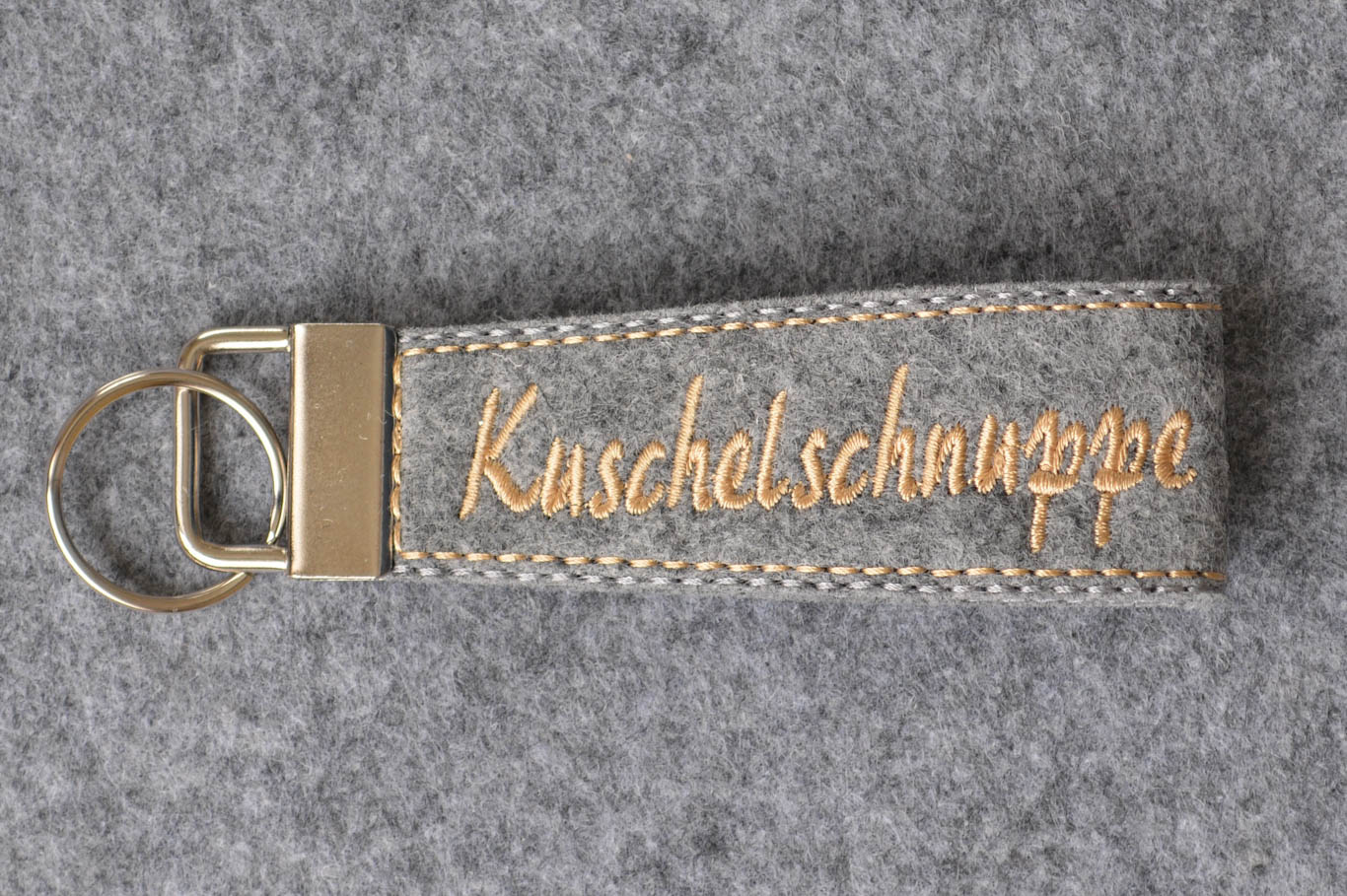 Schlüsselband Kuschelschnuppe auf grauem Filz